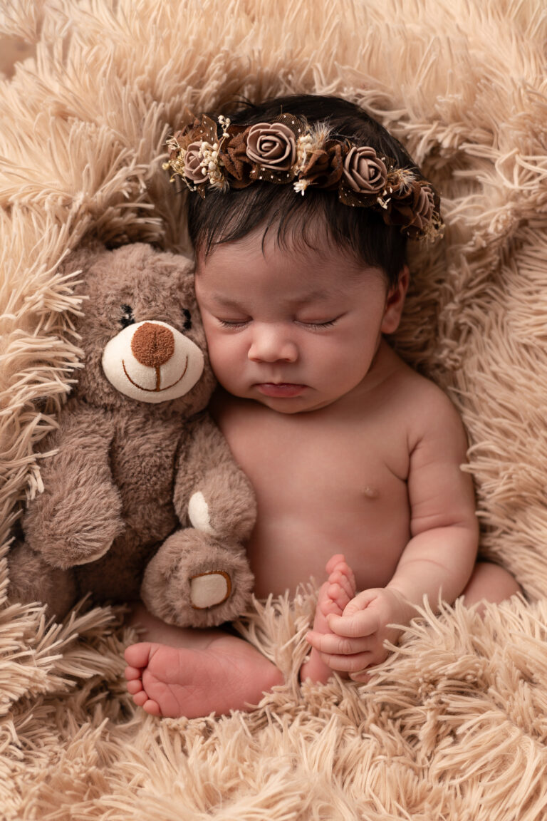 À cet âge, votre bébé dort beaucoup et se laisse facilement poser, ce qui permet d’obtenir des images douces et naturelles.